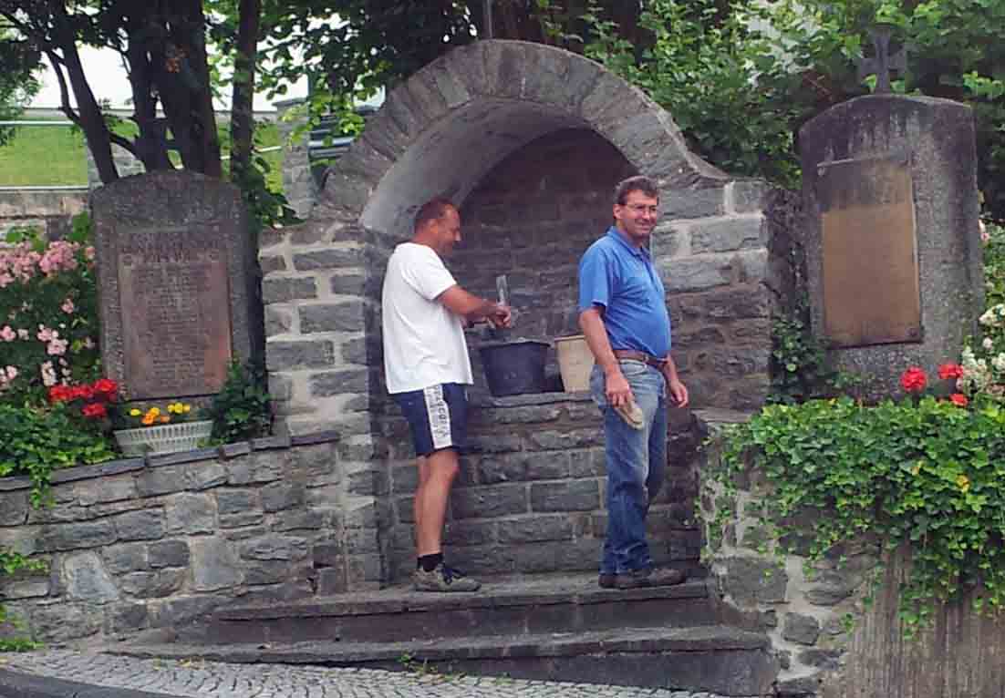Der Bildstock und das Kriegerdenkmal in der Windener Hauptstraße sind renoviert worden. Detlef Clos brachte die Gedenkstätte, bei der Fugen defekt und Bruchsteine lose waren, wieder in Schuss. Die Fugen wurden mit Zement und Sand neu gefüllt, außerdem gab es einen neuen Anstrich. „Jetzt kann sich der Bildstock in der Ortsmitte wieder sehen lassen“, freute sich Ortsbürgermeister Gebhard Linscheid, der Clos für seinen Einsatz dankte.
