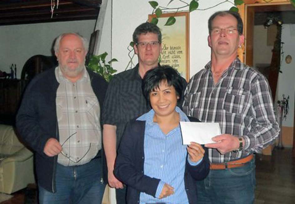 Mit dem somit erzielten Reinerlös beteiligte sich die katholische Kirchengemeinde Winden auf Beschluss des Ortsausschusses an der Taifunhilfe für die Phillippinen. Der 1. und 2. Vorsitzende Gerald Eschenauer und Harald Eifler übergaben einen stattlichen Geldbetrag an Familie Minor. Diese unterstützt auf den Phillippinen direkt Betroffene, insbesondere eine obdachlos gewordene Familienangehörige auf der Insel Panay in der Region Antique. Die 60-jährige verwitwete Luisa hat mit ihren Kindern durch den Taifun „Hayan“ alles verloren. Sie besaßen nur noch die Kleidung, di sie an ihrem Körper trugen. Mit dem Geld soll ein Grundstock für den Neubau einer Unterkunft, die in der Regel dort eher einer Hütte ahnelt, gelegt werden. Die Familie Minor bedankte sich sichtlich gerührt für die Spende.