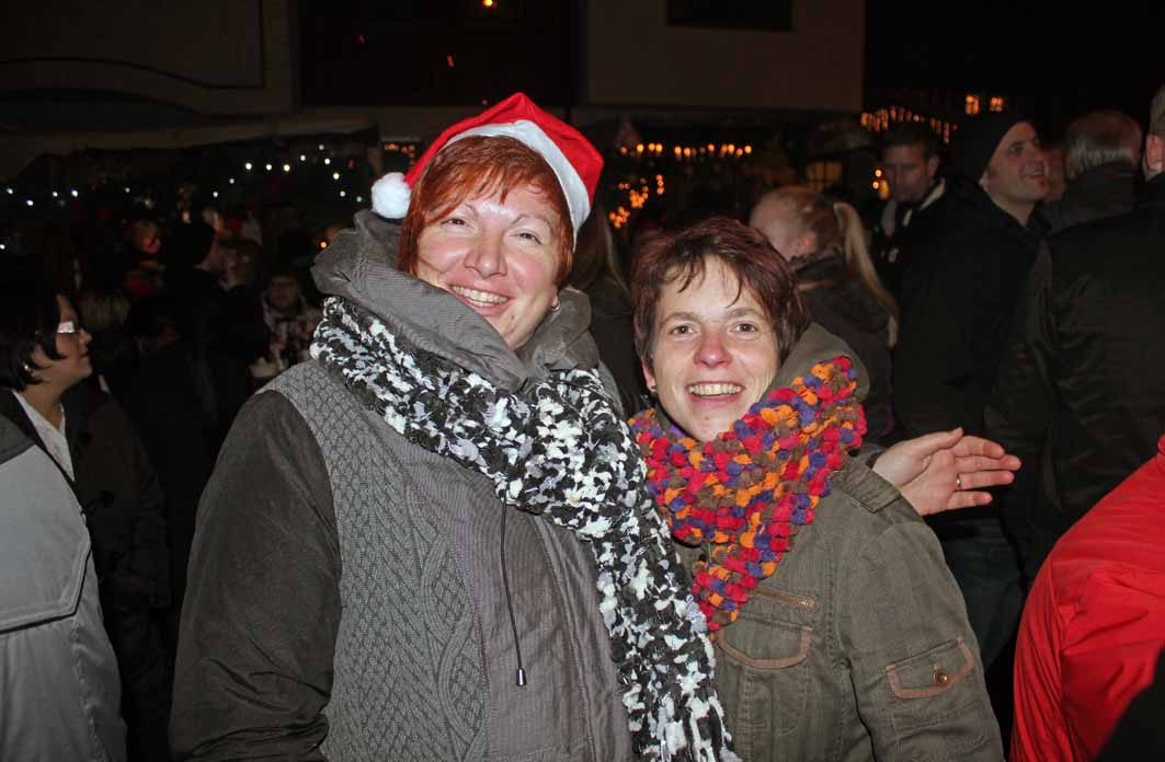 Gute gelaunt: Zwei glückliche Besucherinnen des Windener Adventsmarktes.
