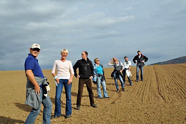 Nach kurzer Rast ging es weiter durch die Weinberge bis auf die Höhe. Nach einer Etappe durch Wald und über Felder kamen die Abenteurer auf der Kreuzley an. Hier wird seit über 100 Jahren alljährlich das Martinsfeuer hoch über der Mosel angezündet; beim Aufschichten des Feuerholzes konnte die Gruppe aus Winden zusehen. Bei einem wunderschönen Panoramablick legten die Wanderer eine längere Pause ein und nahmen ein frisch und selbst vor Ort zubereitetes Zwei-Gang Menü zu sich. Nach der Stärkung, die einige fremde Wanderer doch sehr bestaunt hatten, ging die Wanderung weiter über Felder zum Abstieg in das Schrumpftal und ab der Probstmühle hinauf zum Mosel-Panoramaweg. Von hier hatten die Wanderer einen tollen Ausblick über die Eifel bis Münstermaifeld.