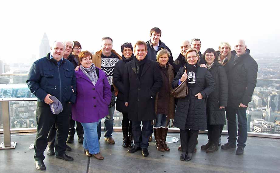 Nach diesem Exkurs in die fernöstliche Medizin machten sich die Windener auf den Weg zum Maintower. In Sekundenschnelle raste der Aufzug mit einer Geschwindigkeit von 15 km/h 200 Meter in die Höhe. Von der Aussichtsplattform hatten die Ratsmitglieder einen tollen Ausblick auf Frankfurt. Eigentlich hatten sich die Windener dort oben mit Oberbürgermeisterin Petra Roth verabredet, um über die Stadtsanierung zu reden. Doch hatte die Politikerin dieses Treffen offenbar „verschwitzt“. Zum Trost ging es zum Frankfurter Adventmarkt, um sich einen Glühwein zu genehmigen und um Anregungen für den 1. Adventsmarkt in Winden am 11. Dezember zu holen. Nachdem sie sich einige Weihnachtsbuden angeschaut hatten, gingen sie zum Essen und dann per ICE zurück in den Westerwald. Der Gemeinderat bedankte sich bei Alexandra und Markus Rübsamen für den schönen und informativen Tag.