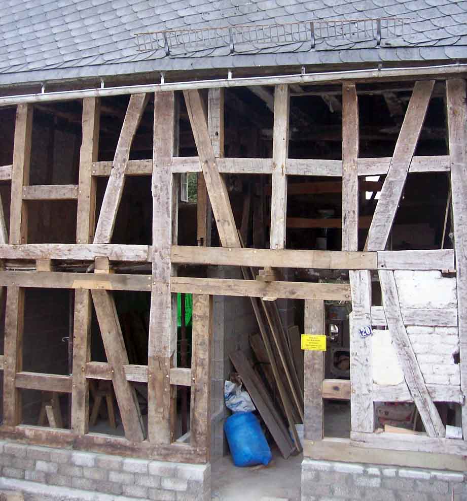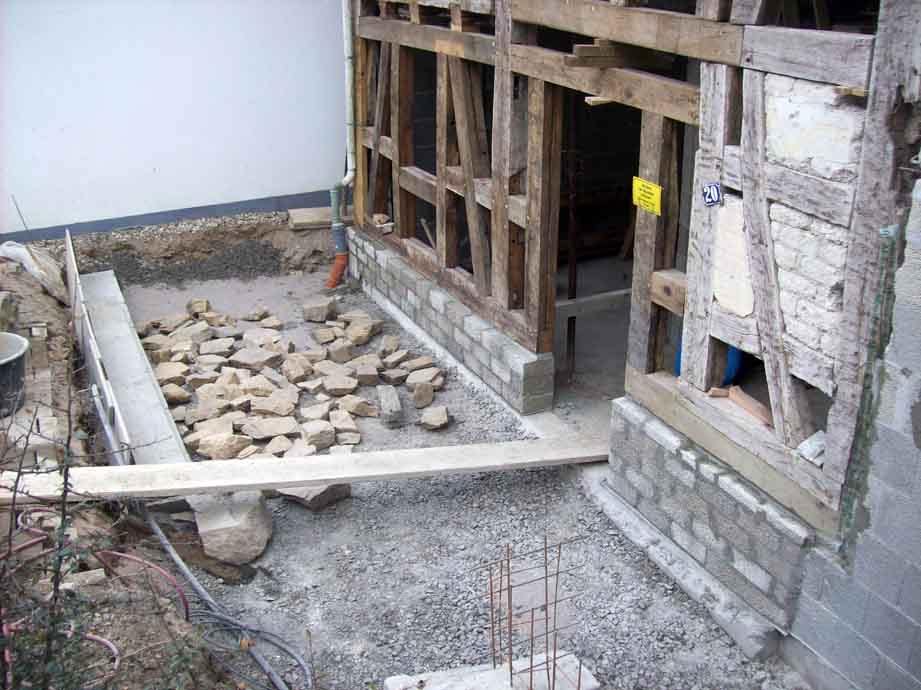 Nach dem Abschluss der Fundamentarbeiten wird am künftigen Windener Dorfcafé in der Hauptstraße derzeit das Fachwerk restauriert, wie unsere beiden Fotos zeigen. Auf der Vorderseite des Gebäudes wurden etliche Holzbalken teilweise ausgetauscht, so dass die zuvor entkernten Gefache alsbald wieder ausgemauert und geschlossen werden können (Foto oben). Auf die ebenfalls erneuerten Fundamente vor dem Dorfcafé soll nun eine Bruchsteinmauer gesetzt werden (Foto unten). Für den Fortgang der Bauarbeiten im Inneren des Hauses, das als Ort der Kommunikation für die Windener dienen soll, sorgt der Gemeinderat in seiner nächsten Sitzung. Dann nämlich werden die Aufträge für Sanitär-, Heizungs und Elektroarbeiten vergeben, teilte Ortsbürgermeister Gebhard Linscheid mit.