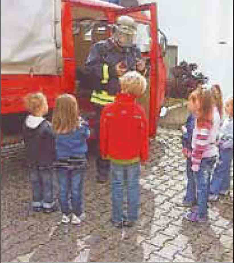 Im Juni haben sich die Kinder zudem eine Woche lang mit dem Thema Feuerwehr beschäftigt. Der Nassauer Brandschutzerzieher Matthias Walldorf zeigte den Kindern erstaunliche Experimente mit Feuer und erklärte ihnen die Arbeit der Feuerwehr und wie sie sich in einem Notfall verhalten sollten. Dabei zeigte er auch, wie ein Feuerwehrauto von innen aussieht und was da so alles drin ist. Krönender Abschluss der Woche war eine Übung der freiwilligen Feuerwehr in der Einrichtung. Ein besonders aufregendes Erlebnis für die Kleinen war jedoch,