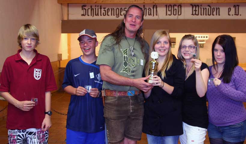 Daniel Linscheid ist der alte und neue Schützenkönig von Winden. Das Rennen um die Königswürde der Schützengesellschaft 1960 gestaltete sich spannend wie selten, erwies sich der Vogel dieses Mal doch als besonders zäh und langlebig. Mehr als 600 Schuss von 22 Schützinnen und Schützen auf den Sperrholzvogel waren notwendig, bevor Daniel Linscheid den finalen Schuss abgab, der den Vogel schließlich zur Strecke brachte. Um 3.10 Uhr am frühen Morgen stand er somit als neuer Regent der Schützen fest. Zuvor hatten die Jugendlichen ihre Majestäten ermittelt. Jugend-Schützenkönigin wurde Hannah Heller, ihr zur Seite stehen als „Ritter“ Verena Müller, Michelle Jordan und Tobias Handwerker. Für das leibliche Wohl von Schützen und Gästen hatten die Organisatoren des Königsschießens bestens gesorgt: Es gab selbst gegrillten Spießbraten und bayerisches Oktoberfestbier. Mit der Beteiligung an dem alljährlichen Königsschießen zeigten sich die Schützen zufrieden.