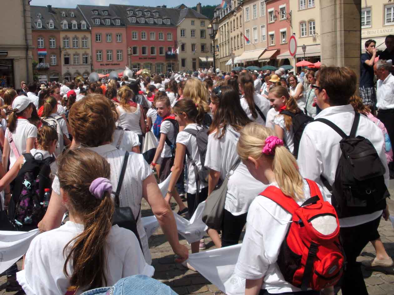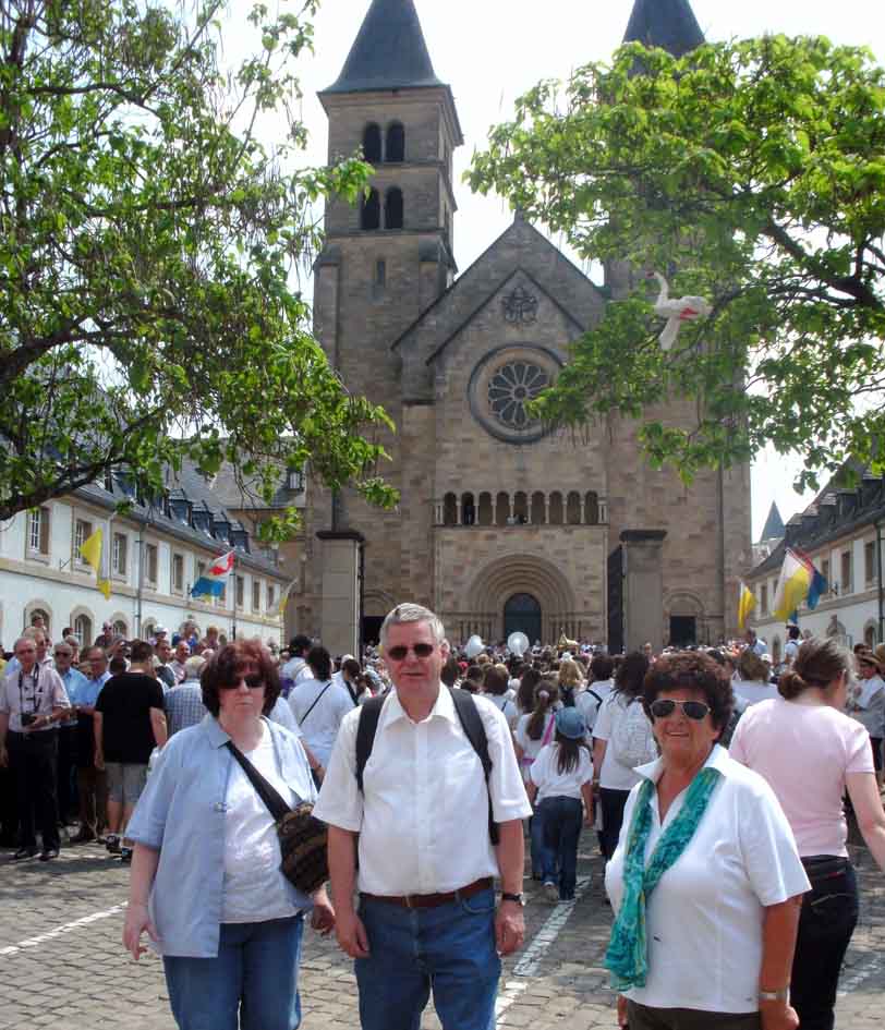 Eine Abordnung aus der Pfarrei St. Willibrord Winden hat an der Echternacher Springprozession teilgenommen, die dem Schutzpatron der Windener Kirche gewidmet ist. Unser Foto zeigt die Vorsitzende des Pfarrgemeinderates Gaby Schwaderlapp mit ihrem Mann Eugen und Gertrud Klöckner nach Teilnahme an der Springprozession vor der Echternacher Abteikirche.