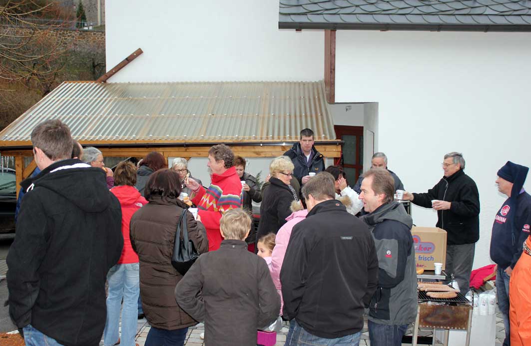 Etwa 120 Bürgerinnen und Bürger fanden am frühen Nachmittag des Silverstertages den Weg zum ersten Jahresabschlusstreffen am Dorfcafé. Die Beigeordneten Heinz Jürgen Schlösser und Thomas Kurth sowie Ortsbürgermeister Gebhard Linscheid mit Ehefrau Rita bewirteten die Gäste mit Glühwein und Bratwurst nach Thüringer Art. Nach zwei geselligen Stunden wünschten sich alle anschließend alles Gute fürs neue Jahr.(Zum Vergrößern bitte auf die einzelnen Fotos klicken!)