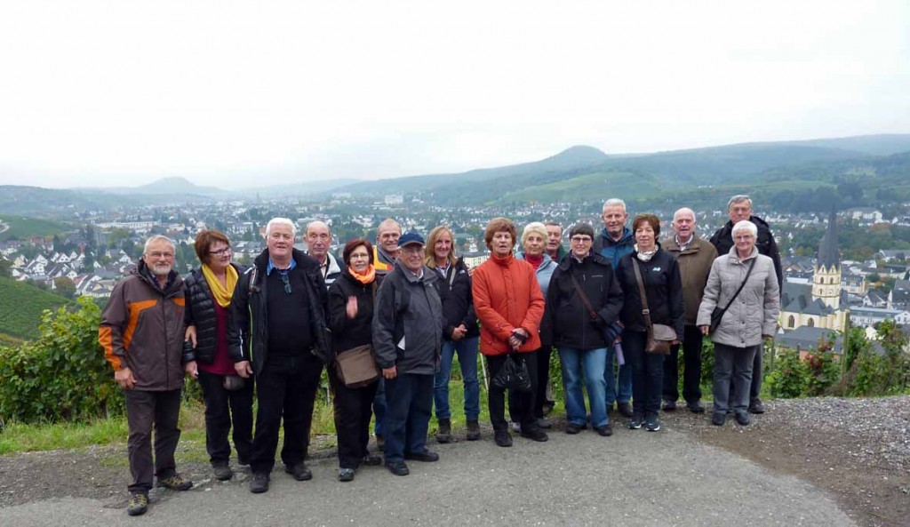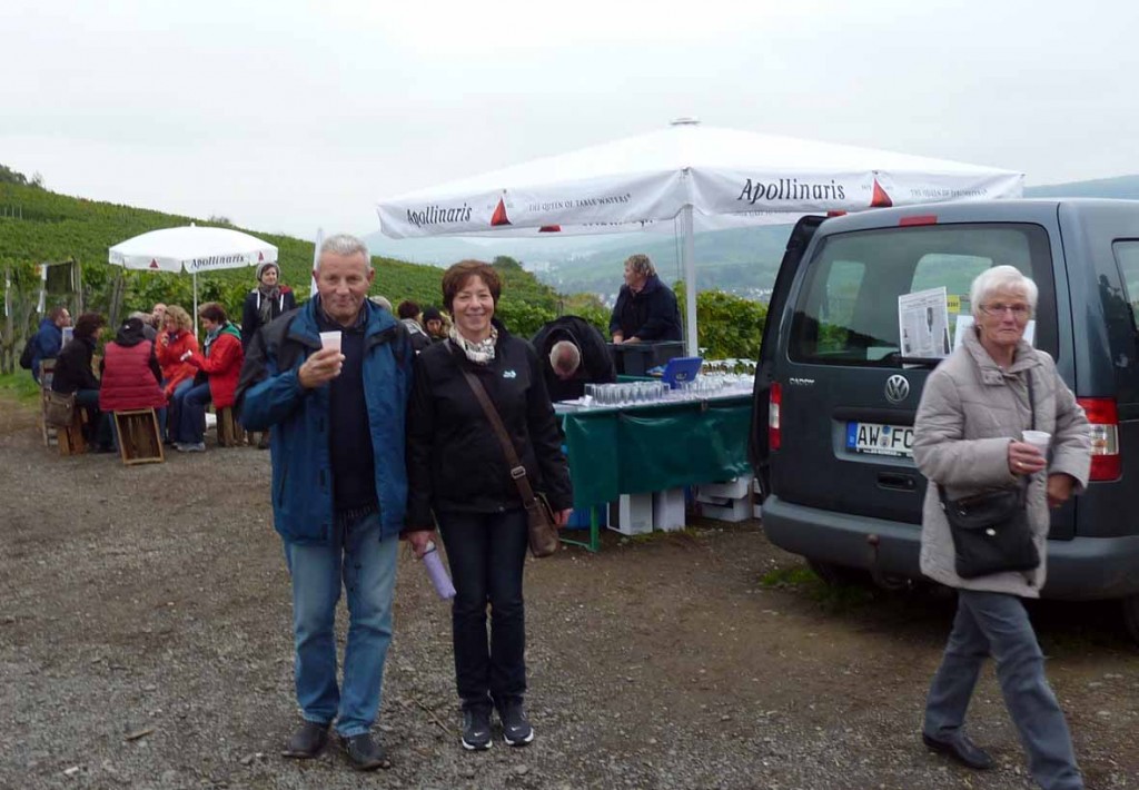 Für einen Teil der Teilnehmer ging es von dort aus zu einer Rundfahrt mit einem Touristikbähnchen durch Ahrweiler und die Kurstadt Bad Neuenahr. Der größere Teil der Sängerschar begab sich auf eine Wanderung über den Rotweinwanderweg von Ahrweiler bis nach Marienthal. Vorbei ging es an dem ehemaligen Regierungsbunker durch die Weinberge, in denen Trauben fleißig gelesen wurden. An mehreren Stellen im Weinberg konnten die Windener den guten Ahrwein verkosten, und es bedurfte einigen Zuredens, um den Weg fortzusetzen.