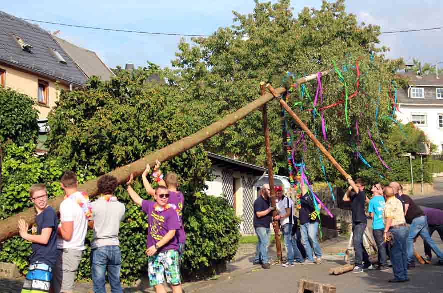 Zahlreiche Zuschauer haben am Freitag bei schönstem Spätsommerwetter die Eröffnung der Windener Kirmes erlebt. Um den Kirmesbaum in die Höhe zu hieven, mussten die Kirmesburschen kräftig anpacken. Unterstützt wurden sie dabei von Kameraden der Freiwilligen Feuerwehr Winden. Gemeinsam wurde der mächtige Baum Stück für Stück aufgestellt. Für die Kinder waren Luftballons vorbereitet, die sie am Kirmesplatz aufsteigen ließen. Damit ist das traditionelle Heimatfest eöffnet, wobei alle Beteiligten hoffen, dass das Wetter so schön bleibt wie am Eröffnungstag.