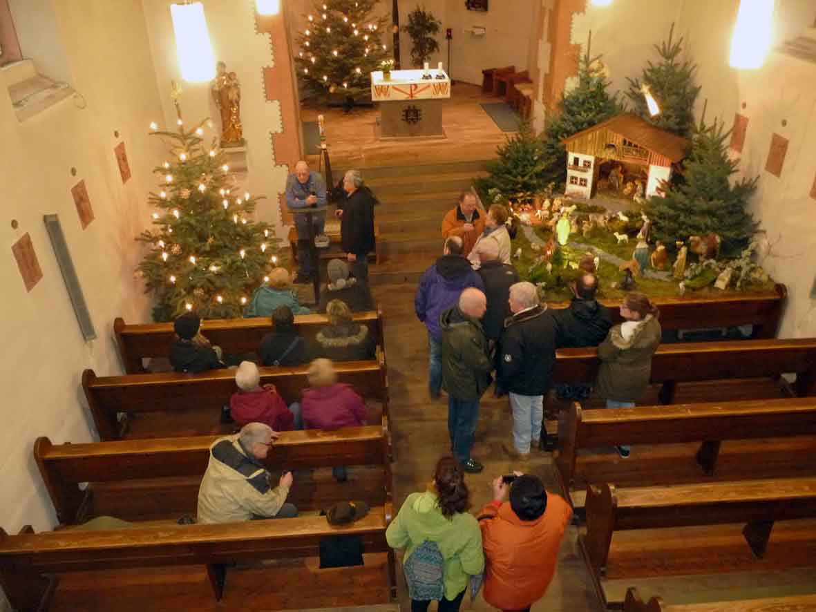 Gemeinsam mit den per Auto angereisten Teilnehmern traf man sich zunächst in der Weinährer Kirche, um dort die von Arthur und Christa Gilberg liebevoll aufgebaute Weihnachtskrippe zu bewundern. Arthur Gilberg und dessen Ehefrau Brigitte ließen es sich nicht nehmen, die Gäste aus Winden persönlich in der Kirche zu begrüßen und mit Hochprozentigem aus dem eigenen Keller zu überraschen. Hierzu von Seiten des Ortsausschusses ein herzliches Dankeschön.