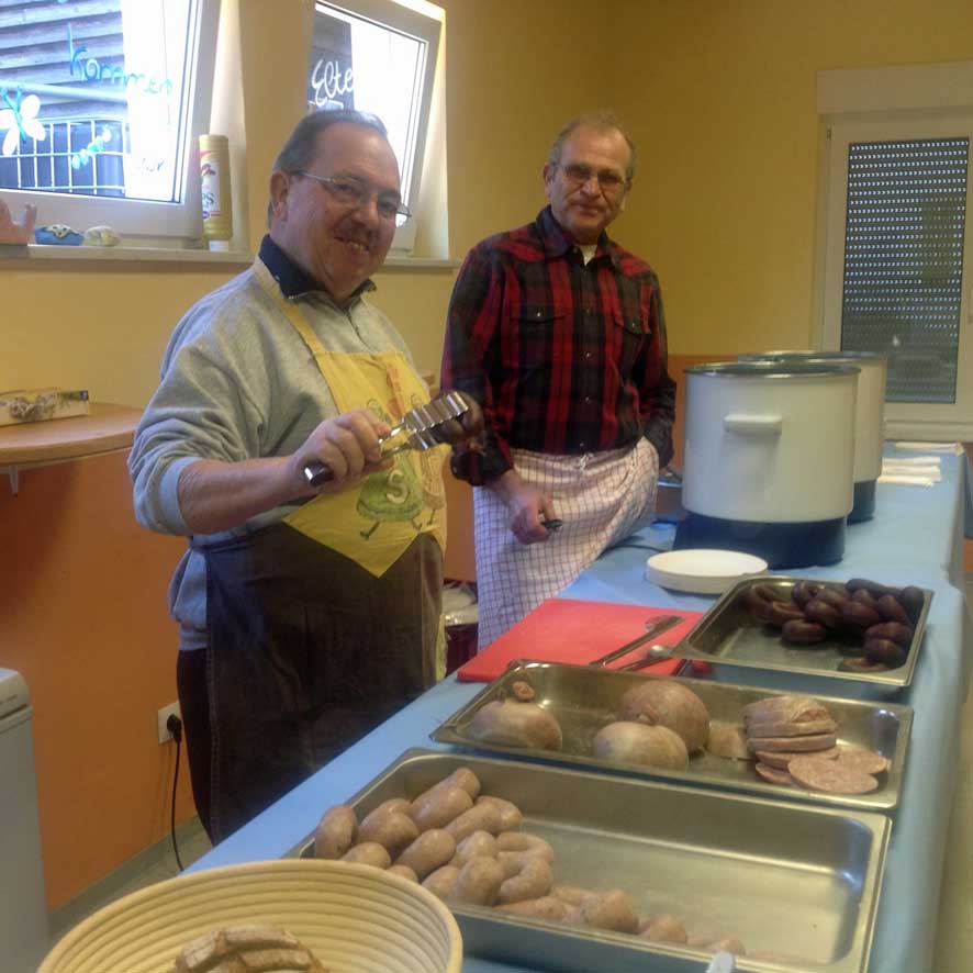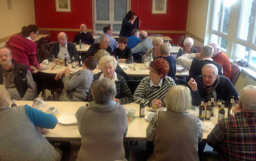 Für den zweiten öffentlichen Auftritt der Sängerinnen und Sänger unter Leitung von Hannah Kröner gab es viele anerkennende Worte. Die Zuhörer waren erstaunt, wie der Chor, der noch im vergangen Jahr ans Aufhören gedacht hatte, sich in kürzester Zeit erholt hat und nun wieder locker, frei und sicher auftritt. Dankeswerterweise machen auch frühere Sängerinnen und Sänger wieder mit, außerdem haben sich neue Aktive angekündigt. Im Anschluss an den Gottesdienst fand im Pfarrheim ein Neujahrsempfang statt, bei dem es auch die bekannt guten Schlachtplatten vom Sangesbruder Peter Odelga, unterstützt von Günter Wolf gab. Auch der von den Sängerinnen und Sängern selbst gebackene Kuchen fand großen Absatz. Man saß noch lange zusammen und ließ die Weihnachtszeit ausklingen.