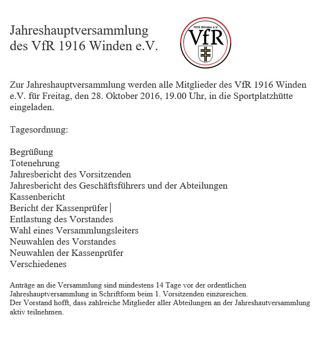 September 29, 2016 Von: Suat Algin Kategorie: VfR Winden
