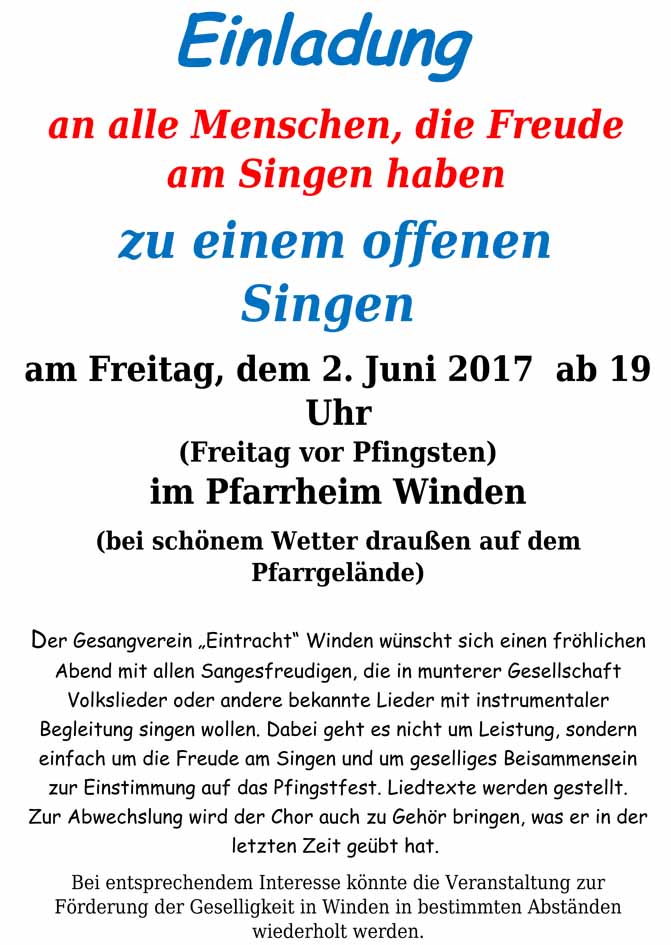 Mai 17, 2017 Von: Redaktion Kategorie: Gesangverein Winden