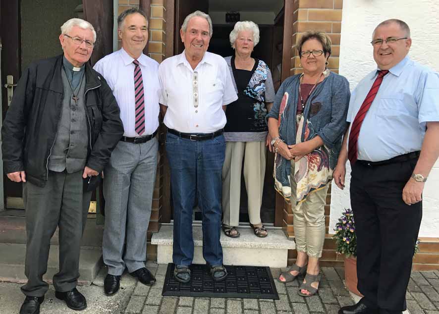 Das Ehepaar Gisela und Berthold Kaiser (Mitte) haben diamantene Hochzeit gefeiert. Dazu gratulierten dem Jubelpaar (v. li.) Pater Harr, Ortsbürgermeister Gebhard Linscheid, die 1. Kreisbeigeordnete Gisela Bertram und der 2. Beigeordnete der VG Nassau, Dieter Ewerth. Den guten Wünschen schließt sich die Redaktion „Wir in Winden“ gerne an.