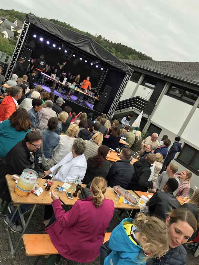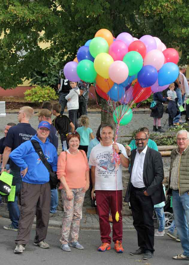 Anschließend folgte ein Luftballon-Umzug zum Bürgerhaus, wo bereits DJ Julien aufspielte. Rita Linscheid, Jutta Handwerker und Dieter verkauften unermüdlich Pommes und Currywurst, so dass die Kirmes richtig starten konnte. Den Samstag gestaltete die Kirmesjugend, die auch bei der Bewirtung ordentlich anpackte. Am Sonntag spielten die Lahntalmusikanten; leider fanden nur wenige Bürgerinnen und Bürger den Weg zum Frühschoppen. Erst bei der Verlosung am Ende des Tages füllte sich der Festplatz.