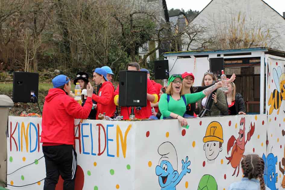 Wenne Helau!, hieß es am „Tulpensamstag“ ab 15.11 Uhr beim Umzug durch die Straßen von Winden. Zehn Gruppen nahmen an dem närrischen Treiben teil: Die „Boseler“ aus dem Altenheim, der „mobile Beichtstuhl“, eine Idee des Ortsausschusses der katholischen Kirchengemeinde, Schmetterlinge der Turnerfrauen, die Kinderstars, ein Wagen der Kirmesgesellschaft, das Kinderprinzenpaar, Carmen and friends, Freunde des VfR Winden und die Karnevalsfreunde „Vor dem Wald“. Unterstützung gab es aus dem Nachbardorf: Die TuS Weinähr hatte den beschwerlichen Weg nach Winden auf sich genommen, um mit ihrem großartigen Wagen den Umzug in Winden zu unterstützen. Abgerundet wurde der Straßenumzug von der Musikkapelle Daubach und Süßigkeiten, die wie in jedem Jahr von der Ortsgemeinde Winden gesponsert wurden. Trotz der geänderten Gesetzeslage bei der Nutzung von Anhängern bei Umzügen durch die Landesregierung konnte in Winden ein schöner und farbenfroher Fastnachtsumzug stattfinden. Allen Aktiven dafür ein herzliches Dankeschön.